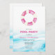 Celebrate with a pool party themed birthday! Great for pool birthday parties for your summer baby. This fun pool-themed birthday invitation features a watercolor pink pool ring float with a blue watercolor background. Personalise with your information or click "Click to customise further" to edit font styles, size and colours.
