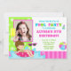 Pool Party Birthday Invitation Brunette Girl