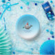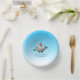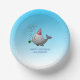 Pool party birthday Paper Bowls with a cute illustration of a little whale. The whale is wearing a red and white striped party hat and has started the birthday party in the pool.