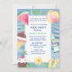 Pool Birthday Party With Watermelon, Sun Tan Oil, Cupcakes, Ice Cream, ball, and Flip Flops. Cool Water Background.