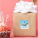 Cute illustration of a little whale on square stickers. The whale is wearing a red and white striped party hat and has started the birthday party.