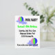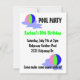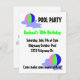 A fun pool party birthday design with colourful beach balls in pink, green and blue stripes. Customise with all your own party information as desired.