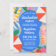 Colourful, modern and trendy high school graduation party invitation. The party details are written on the blue water of the pool in white text. The aerial view shows women sunbathing poolside, red and white umbrella tops, beach balls, and tropical flowers and palm leaves. Blue and white tile provides the background. This item is part of the Graduation Pool Party collection.