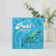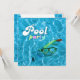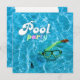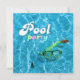 Customisable invitation template for summer pool party with clear blue pool water, snorkel and colourful text.