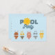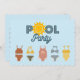 Swimsuit Pool Party Invitation with vintage colour scheme and party details on the back.