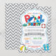 Pool Party Invitation. Summer Splish Splash. Boy Birthday Party Invite. Beach Ball. Swimming. Swimsuit. Birthday Bash. Grey Grey Chevron. White Background. 1st First Birthday. Any Age. Printable Digital. For further customisation, please click the "Customise it" button and use our design tool to modify this template.