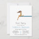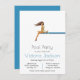 Simple and Modern Pool Party Invitation with a beautiful girl on a diving board with tropical drink. All wording can be changed to fit your needs!