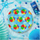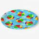 Summer swimming party plates featuring a beach ball in a cool pool. Add text to personalise.