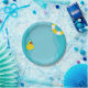 Pool party paper plate for themed kid's birthday party celebration. Modern design.