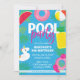 Invite your guest to your Swim Party using this brightly coloured invitation features and reflecting water background and lots of super fun pool floaties! Click on "Personalise this template" to change the wording. If you want to change fonts, sizes, colours, or placement, scroll down to "Click to customise further" and use our design tool!