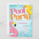 These invitations feature flamingos on a blue background. This invitation is easily customised for your event by simply adding your details.
