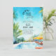 Adult Pool Party invitation with inviting watercolor illustration of tropical swimming pool and sun terrace. Perfect for tropical birthday party, poolside cocktails, beach party, luau party etc. Easy to edit template so you can adjust for any age, ie., being 21 .. again! can be changed for 21st birthday, 30th birthday or just birthday if age is a secret number! The back of the invite has equally enticing summer blue sky and rippling water.