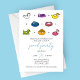 This Pool Raft Line Icon Pool Party Invitation features a fun and playful design that's perfect for a summer celebration. The illustration of eight colourful pool floats, including a doughnut, dragon, and unicorn, adds a whimsical touch to the invitation. The modern calligraphy and easy-to-read typography make it easy to convey the important details of the party, such as date, time, and location.