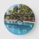 The clock did not take as long to arrive as I thought it might and was extremely well packaged. I didn't do the measurements so I didn't realize it is a little smaller than the average clock but that does not matter (just make sure you check if that's important to you).It is really nifty! It seems very solid and well made not flimsy at all. It has been going well and has kept good time in its few weeks on my wall. Nice product. Gets noticed too! Nicer in real life than the picture but true to the picture