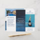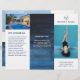 Modern trifold brochure featuring a simple and professional design. The front panel has your logo, business name, a photo in the middle and three lines of text below. The back panel has a template with "Contact Us" and your company info over a dark navy blue watercolor wash. The inner fold panel has a photo and one header and text box. The inside has a photo and templates for additional information about your business. You may keep the the photos in the design or replace them with your own. This masculine design is perfect for a swimming pool service company but can be used for any type of business.