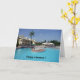 Happy relaxing retirement card featuring relaxing pool resort scene. Customise the card for any other occasion.