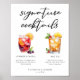 This refreshing afternoon poolside reception signature cocktails menu poster features simple black typography above 2 drinks and their ingredients for your wedding bar. A cute summer Sangria and Mai Tai drawing add a cool flair to your bar menu. Complete with the couple's names and date for their reception.