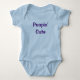 Funny, cute blue one-piece for a newborn baby boy with the custom words "Poopin' Cute" in a trendy, stylish font.