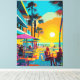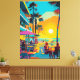 Relax into the vibrant energy of a tropical evening with this bold pop art featuring a beachfront café at sunset. The lively colours and retro-inspired style capture the essence of seaside leisure and tropical charm. Perfect for fans of pop art, summer vibes, and those seeking trendy, colourful decor to brighten their space.
