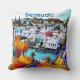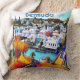 A beautiful landscape photo of downtown St. George Bermuda is transformed into a colourful Pop Art square throw pillow.