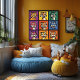 This vibrant and playful pop art cartoon tiger grid features a collection of expressive tigers in bold, bright colours. Perfect for animal lovers or as a whimsical addition to any space, this cheerful and modern wall art is ideal for children's rooms, home décor, or gifts. Available in multiple sizes, the design can be personalised with a fun phrase or family name, adding a personal touch to this colourful artwork.