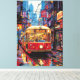Ride through the vibrant energy of the city with this bold pop art featuring a retro tram surrounded by neon-lit streets. The electrifying colours and reflections create a dynamic and lively composition, perfect for fans of pop art, urban enthusiasts, and those seeking colourful and modern decor. Add a splash of movement and style to your space with this captivating artwork.