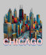 Comic book style pop art Chicago, Illinois skyline. Tall buildings ai art. Chicago souvenir keepsake.