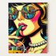 Pretty comic book pop art retro pretty lady drinking bubble tea with sunglasses on with a sunset reflection.