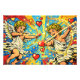 A vibrant pop art illustration featuring two playful cupids drawing glowing bows of love. Bursting with bold colours, comic-book style dots, and floating hearts, this artwork celebrates romance, joy, and light-hearted affection with a modern pop art twist.