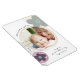 Modern and feminine photo magnet in muted shades of pink and green. The design has abstract pop art flowers with paint splatters and a round photo frame. The photo template is set up for you to add your own picture and the wording is fully editable to suit any one and any occasion. It currently reads "lots and lots of love on your first mother's day as grandma" and is lettered in casual handwritten script style typography.