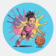 Pop Art Girl Basketball Birthday Bash Classic Round Sticker