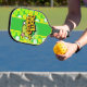 A Fun Retro Pot Art Good Luck Pickleball Paddle In Green And Yellow