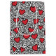 This vibrant pattern features bold, red hearts scattered across a white background filled with dynamic black doodles. The playful design, reminiscent of pop art, uses strong lines and whimsical shapes to create a lively and energetic visual. The juxtaposition of bright red hearts and abstract black strokes evokes a sense of love and spontaneity.
