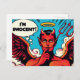 AI generated art of an devil with angel wings in a comic book style that says I'm Innocent with a slight glitch on the text