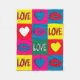 Pop art wallpaper for Valentine's Day with heart and lips decoration in colourful squares