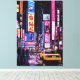 Pop Art Neon Cityscape with Yellow Taxi Canvas Print