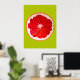 A cute and colourful vibrant pink grapefruit fruit slice from an original painting by artist Sacha Grossel. This large pop art style fruit is pink orange and very bright and colourful against a customisable pine lime coloured background. Quirky and original.