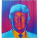 Vibrant colours of blue, orange and pink highlight this pop art graphic design of President Donald J. Trump.