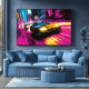 This dynamic pop art racing car design captures the thrill of high-speed action in a neon-lit cityscape. Featuring vibrant colours, sleek cars, and a fast-paced urban atmosphere, this piece is perfect for car enthusiasts, racing fans, and those who love energetic artwork. Customise the license plate with your name or a special phrase to make it truly unique! Available in multiple sizes, this artwork will add excitement and a modern pop art flair to any space.
