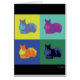 A picture of a squirrel photomanipulated in a pop art style in blue, green, yellow, orange, turquoise, and purple against a black background