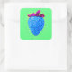 Bright blue strawberry on a green background in Pop art style. For Contemporary & Pop Art lover.