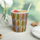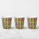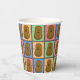 Fun colourful paper party cups style mouse pad with a pattern of different coloured rectangles each with a happy brown potato in the middle.