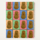 Fun colourful pop art style journal with a pattern of different coloured rectangles each with a happy brown potato in the middle.