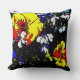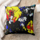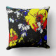 pop art style red yellow blue and white flowers cushion