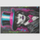 A striking and surreal portrait, this artwork features a mysterious woman in a top hat, blending pop art, surrealism, and bold graphic elements.