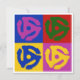 Graphic of four bright and colourful 45 RPM plastic record inserts in a retro classic American pop art style.