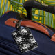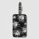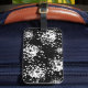 A black and white creation of a white flower. This unique luggage tag should be easy to identify your suitcase at baggage claim.