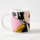The design draws inspiration from mid-20th-century pop art, capturing the energy and emotion of that iconic artistic era. The woman’s expressive face, flowing yellow hair, and soft pink background create a dynamic and eye-catching composition. Whether you’re an art enthusiast, a lover of retro aesthetics, or simply someone who enjoys colorful designs, this mug adds a creative spark to every coffee or tea break.