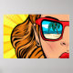 A cool pop art woman in sunglasses with the beach reflecting in her glasses. Great with a simple black frame.