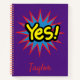 A pop art yes notebook, this item features a purple background with "Yes" inside a blue and red speech bubble. Order yours today!